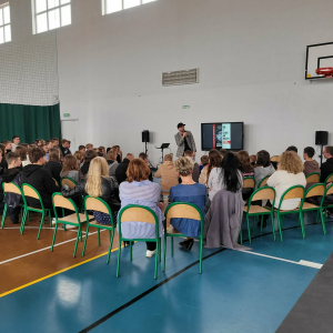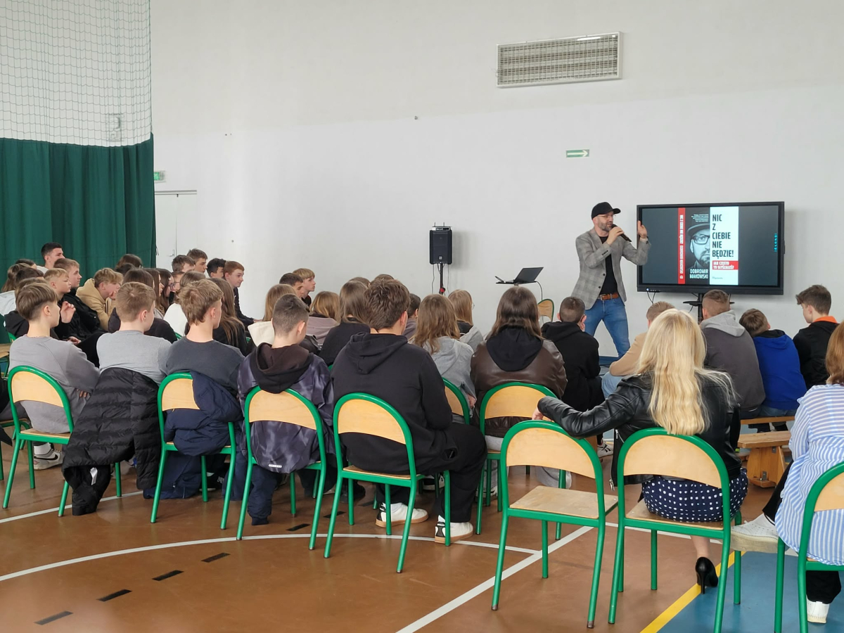-dla osób starszych- spotkanie dedykowane rodzicom, nauczycielom i mieszkańcom. Dobromir z niesamowitą trafnością punktował wyzwania współczesnego wychowania, ucząc nas, jak budować relację z młodym człowiekiem opartą na zaufaniu i autentyczności.